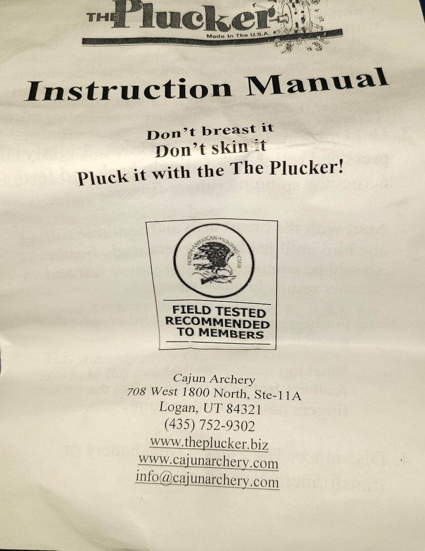 Duck & Goose - Grouse to Chickens... New never used Plucker - comes with