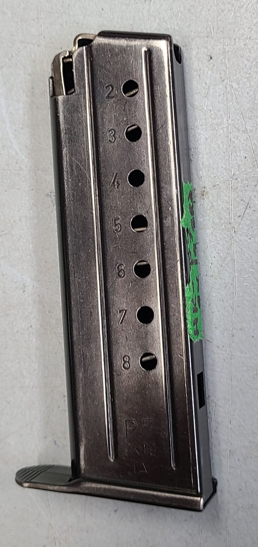 Tthis magazine is for an original, European version of the H&K P7 pistol, with the