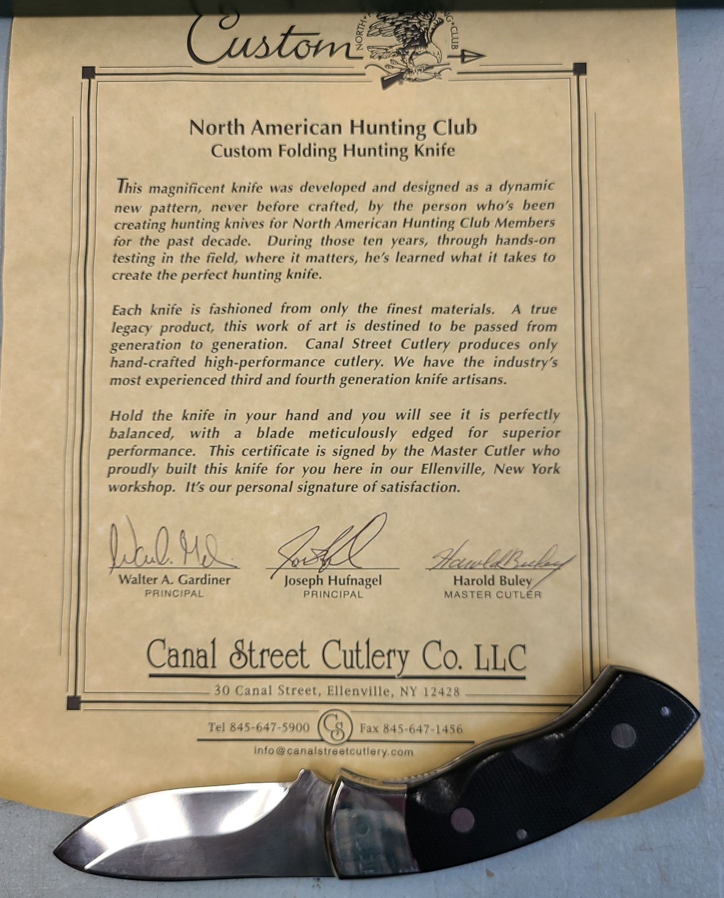 4. Each knife serialized with a certificate of manufacture showing year of