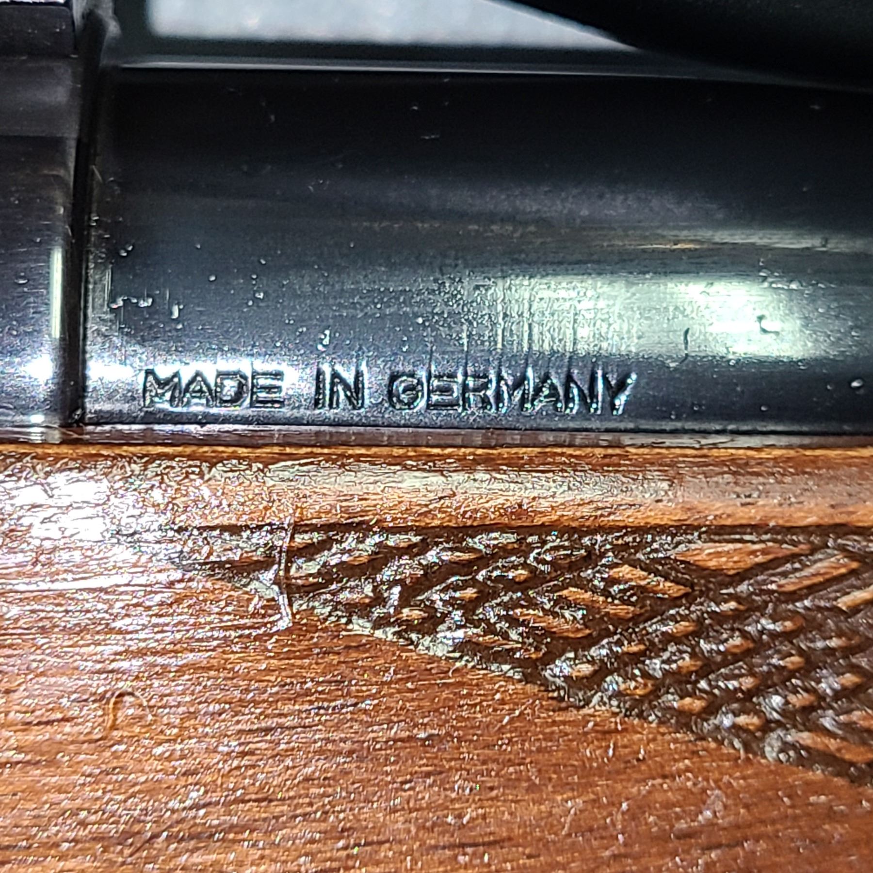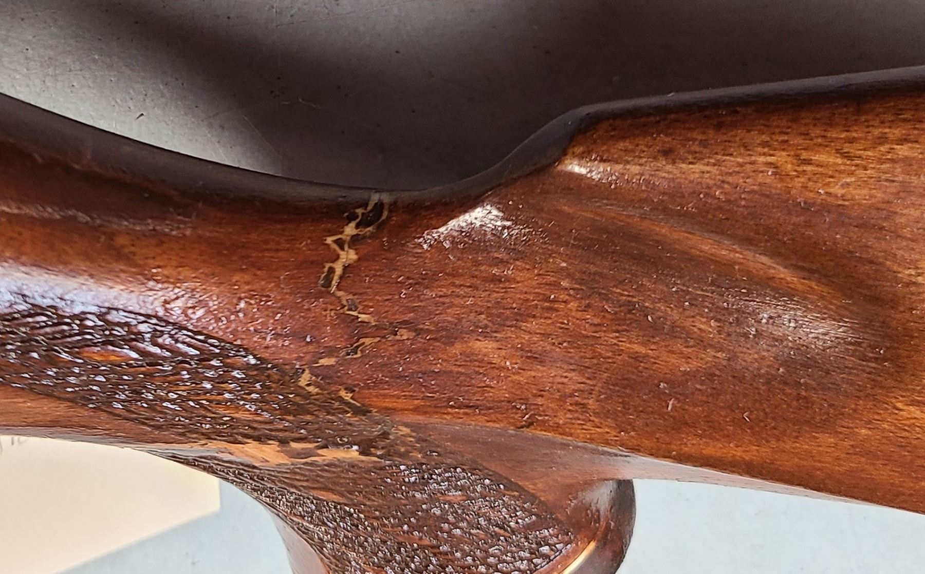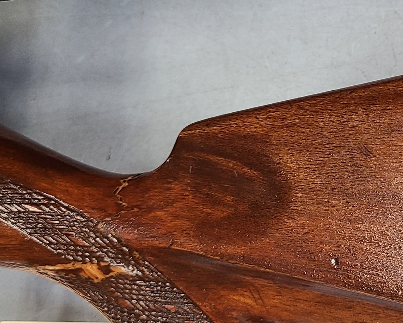 Stock was broken at one time and has been repaired.