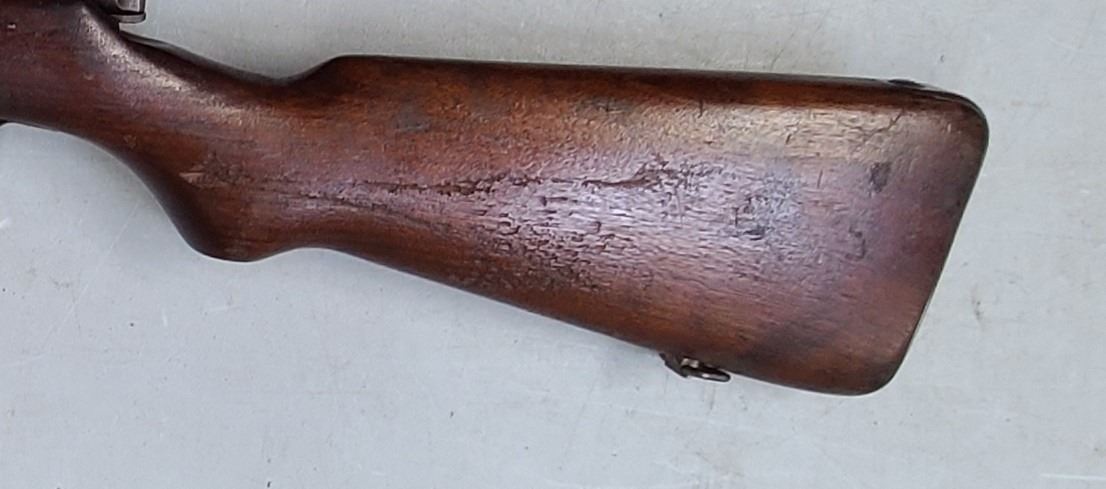 steel butt plate. There is a deep gouge on eft side of stock and a few other dents.