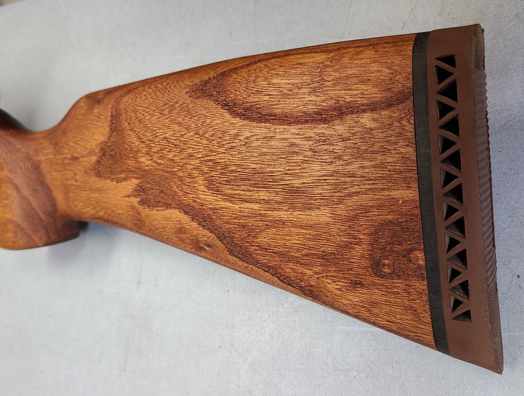 TWO PIECE HARDWOOD STOCK WITH STEEL BUTT PLATE. - Stock has been