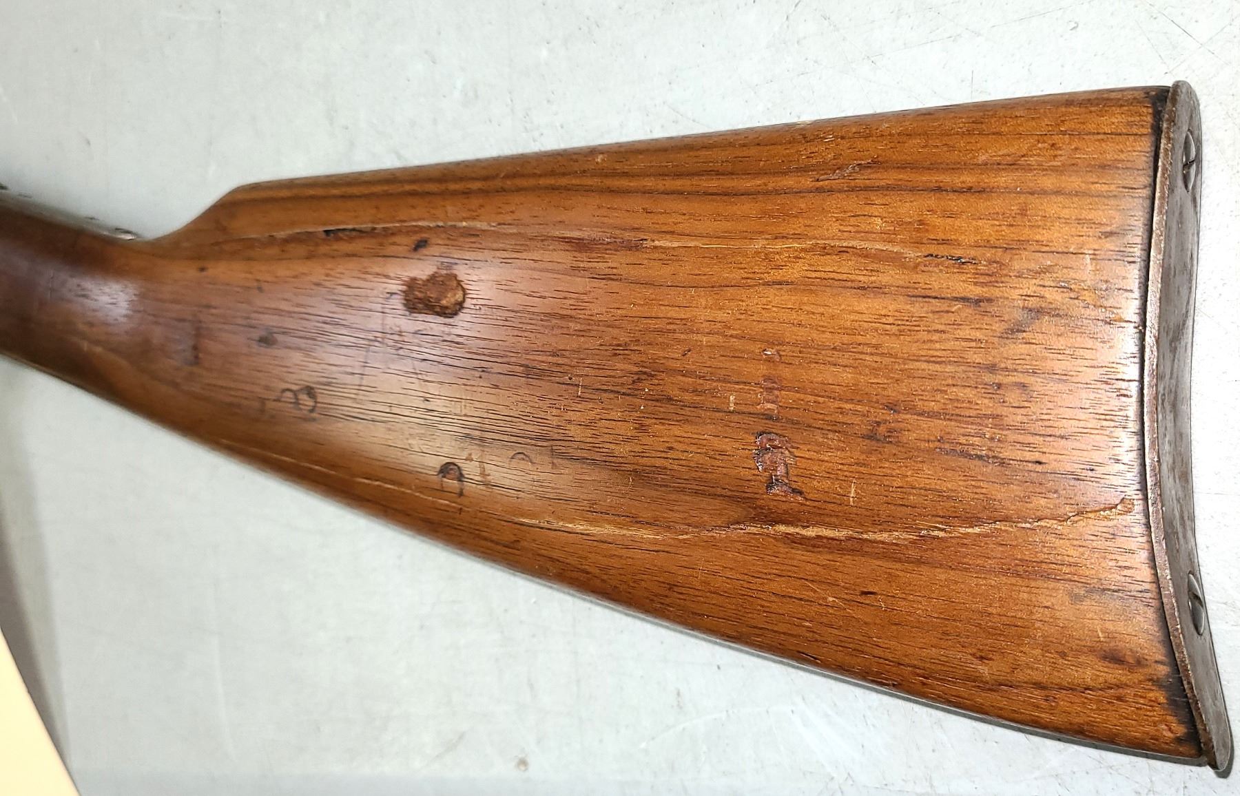 The forend and rear stock have sctraches and marks. Rear stock has large cracks