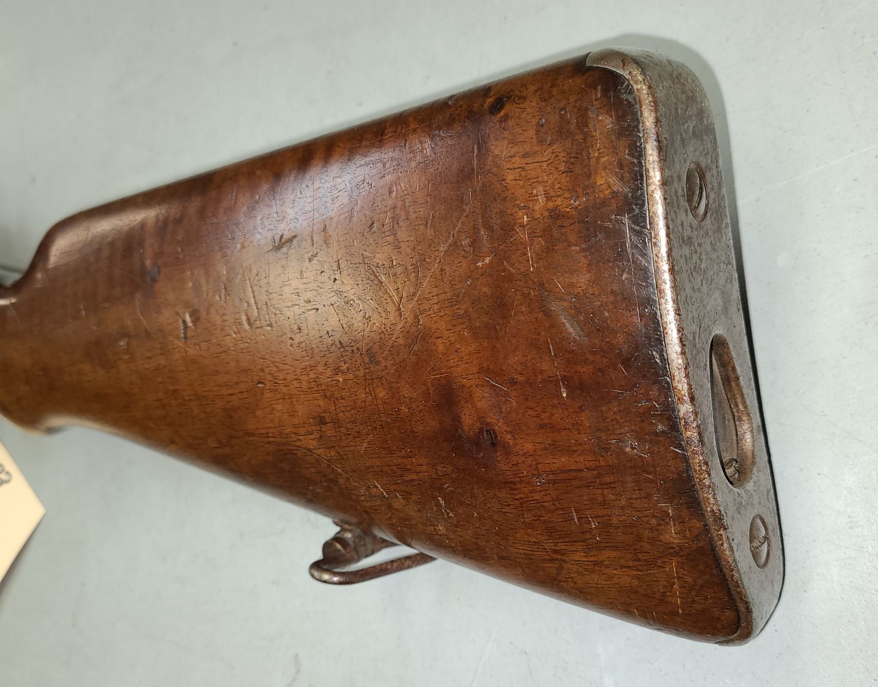Overall Condition: This rifle retains about 30% of its metal finish.