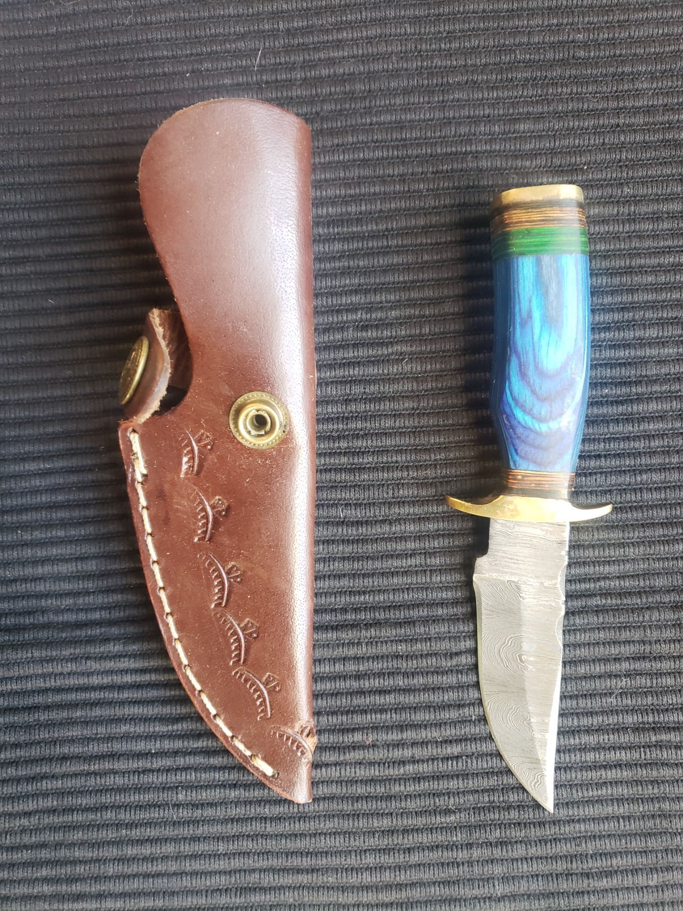 Lot 254 Hand Forged Damascus Steel Knife with Leather Sheath