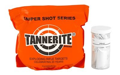 Tannerite, Sniper Shot, (4) 5lb., (40) Target Pouches, (1) mixing jar, (1) prepacked silver catalyst, (1) earplugs
