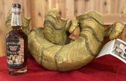 Replica Wine/Whiskey Bottle Holder with Exclusive Wyoming Whiskey Bottle bottled exclusively for the National Bighorn Sheep Center. Ben Barto of Bone Daddy Knives hires and trains veterans and families of veterans to build antler knives and various other antler products. 5% of sales generated from the sale of these products are donated to the Horns for Heroes Foundation. Bottled from Wyoming Whiskey’s Private Stock Program (barrels that are selected not only for their superior quality but for their uniqueness in taste), this barrel is from the top 1% of the rack house and has been reduced to perfect drinkability at 93 proof. The label itself boasts photos of the herd’s rams and Whiskey Mountain taken by local wildlife photographer, Bill Sincavage.