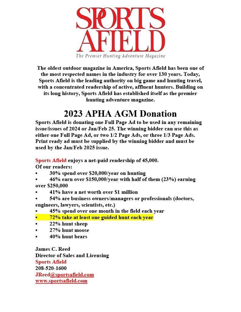 Lot 23 Sports Afield Ad Donated by Sports Afield