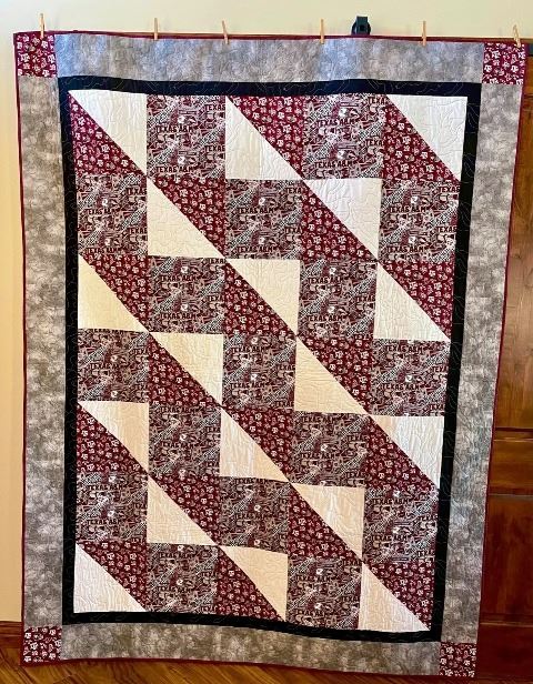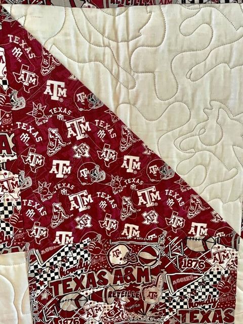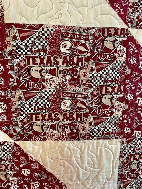 This one-of-a-kind, custom designed quilt will keep the most loyal Texas A&M fan warm during the colder months. It will lie on a queen-sized bed and is quilted with the image of ‘Reveille’ throughout. If you are a diehard Aggie fan, then this quilt is a must have for your home or at the game.