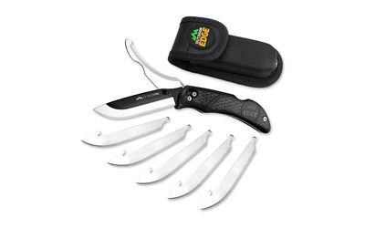 Outdoor Edge, Razor Pro, Folding Knife, Plain Edge, 3.5" Blades , 420J2 Stainless Steel, Black Handle, Includes (6) Drop Point Blades and Gut Blade