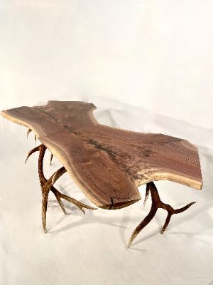 Lake AntlerWorks has generously donated a captivating masterpiece - the esteemed Captain Desk. This unique desk, crafted under the discerning eye of the award-winning artist, Joseph Lake, boasts a signature design that reflects his artistic finesse. Meticulously handcrafted, the desk features four elegant elk antlers intricately blended with a solid piece of grafted Claro and English Walnut. Sourced from the coveted orchards of California, this particular walnut variation exhibits rich tones and mesmerizing figures, captivating all who behold it. The desk's majestic support comes from two sets of perfectly matched, naturally shed antlers originating from wild bulls in the picturesque landscapes of Wyoming. A stunning embodiment of symmetry and elegance, the design celebrates the antlers with utmost reverence, creating a clean and harmonious aesthetic. With its impressive dimensions of 7ft. wide, 38in. deep, and standing 30in. tall, with an approx. weight 250LBS. For more information, contact Joseph Lake by email lakeantlers@gmail.com or by phone at 307-359-8804. Company's website: www.lakeantlerworks.com