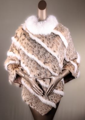 Lot 75FD Canadian Lynx Poncho Adorned with Shadow Fox Inserts and Collar