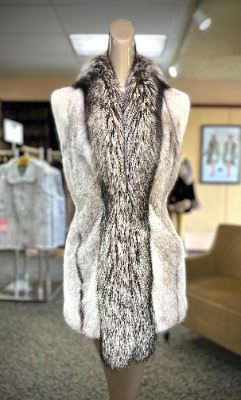 Alaska Fur Gallery donated a Full-Skin Black Cross Mink Vest elegantly adorned with Natural Silver Fox Tuxedo Trim. This reversible piece, transitioning to Taffeta Rainwear, seamlessly combines luxury and practicality. With a length of 28 inches, this vest showcases the opulence of Black Cross Mink fur from Denmark and the timeless appeal of Natural Silver Fox fur from Finland. With over 70 years of unparalleled service, Alaska Fur Gallery in Anchorage has been a distinguished name in fulfilling the fashion and outerwear desires of discerning individuals. A family-owned establishment, the gallery boasts an extensive array of furs, shearlings, specialty outerwear, leather goods, and accessories, all complemented by exceptional personal service. With an on-site factory, Alaska Fur Gallery offers a unique opportunity to not only purchase exquisite furs but also avail expert services such as repairs, restyling, conditioning, and appraisals, all executed by renowned master furriers. For more information, contact Malena Hausinger by phone at 907-274-3877 or by email at info@akfurgallery.com. Company's website: www.akfurgallery.com.