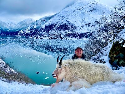 The Mountain Goats will be hunted late in the season when the snow and the rut push them down into glacial fjords, providing one of the only places in the world where you can hunt Mountain Goats by boat!