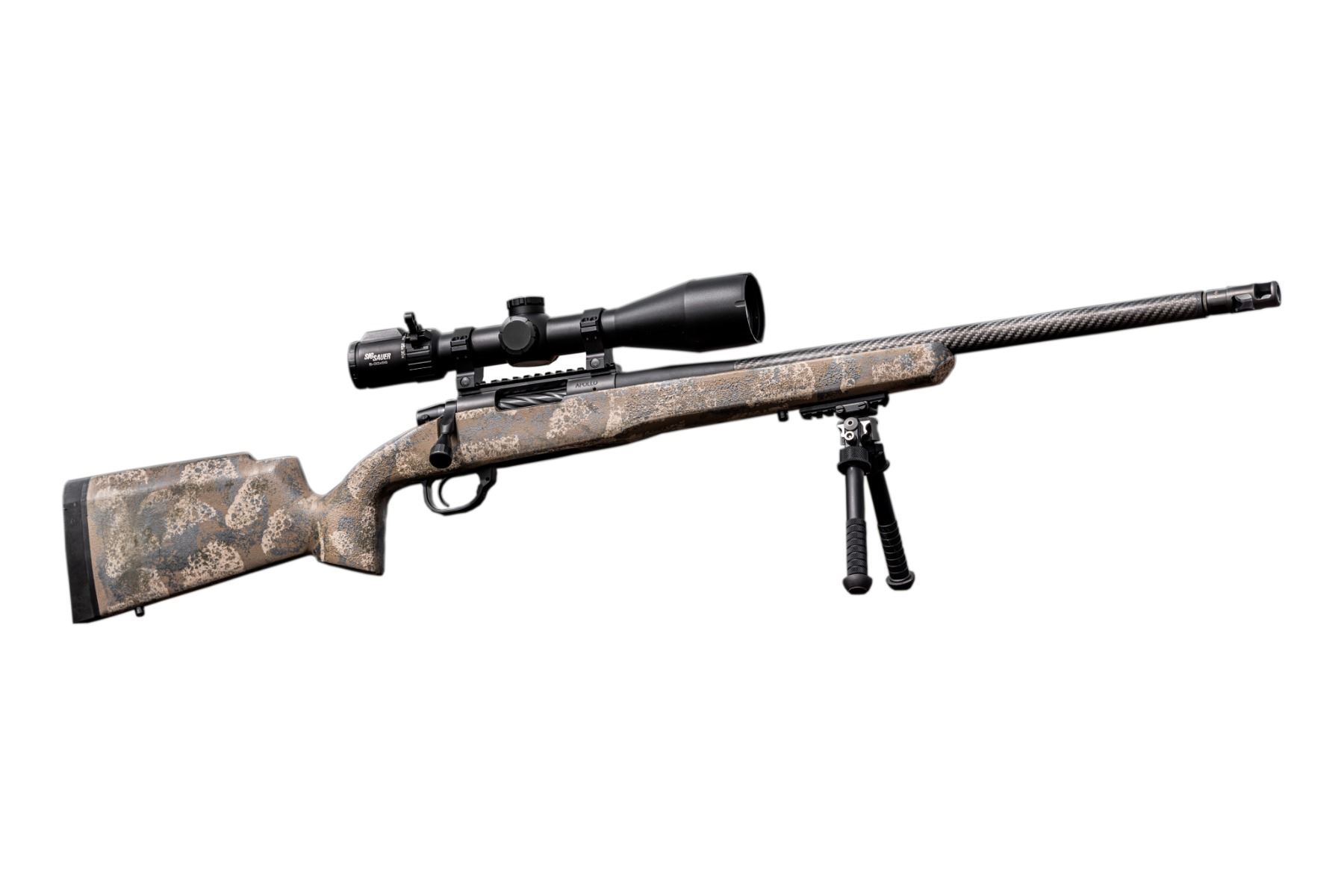 Features include sub-MOA precision in a lightweight package (6-8 pounds), industry-leading Terminus action, DLC-treated chromoly fluted bolts in a pre-hardened 416 stainless action with a roller-tipped cocking piece, actions and TriggerTech triggers in a composite stock and hand-fitted BSF carbon fiber barrels. This rifle will be custom-built to your preferred caliber.