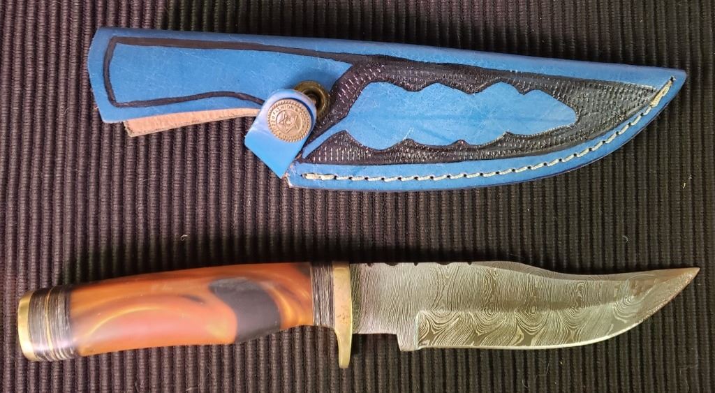 Lot 212 Hand Forged Damascus Steel Fixed Blade Knife