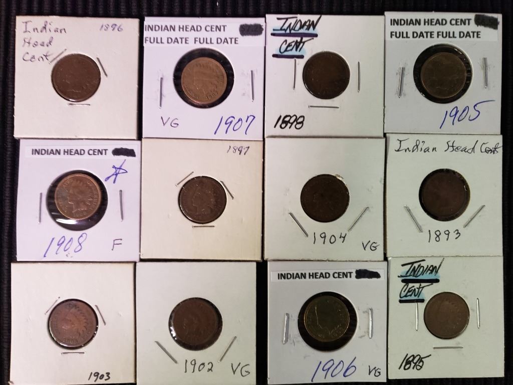 Lot 227 12 Indian Head Pennies, Random Dates, At Least Good Condition