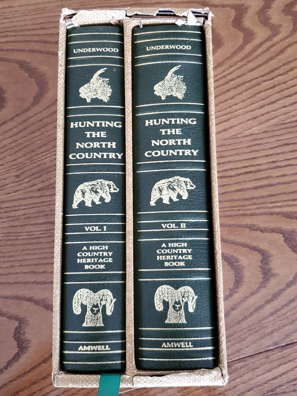 Description: A collection of 8 hard cover books(some slightly worn) from the collection of Bill and Ingrid Moynihan. This set's titles include: "Skills for Taming the Wilds"(paperback) by Bradford Angier, "Montana's Charlie Russell" by Jennifer Bottomly-O'Looney and Kirby Lambert, "The Gunner's Bible"(paperback) by Bill Riviere, "The New Hunter's Encyclopedia", "Alberta Wildlife Trophies" by Alberta Fish & Game Assoc., "Bowhunting Big Game Records of North America, 1st edition 1975", "Hunting The North Country-Volume 1 & 2" (#359 of 1000)signed by Lamar Underwood, "Real Cowboys, Grand Canyon to Mexico" signed by Ed Ashurst