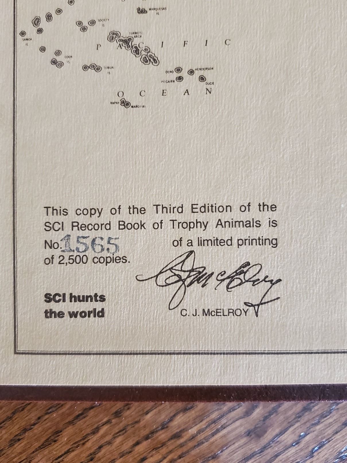Description: A collection of 8 hard cover books(some slightly worn) from the collection of Bill and Ingrid Moynihan. This set's titles include: "Bunkhouse Papers" by John Upton Terrell, "Mountain Sheep and Man" by Valerius Geist, "The Gilly" by Alfred G. Davy, "Charles M. Russell" by Frederic G. Renner, "Sitting Bull, Champion of the Sioux"(paperback first printing) by Stanley Vestal, "Record Book of Trophy Animals 1980 Edition from SCI" (#1191 of 2000)signed by C.J. McElroy, "Record Book of Trophy Animals 1981 Edition from SCI" (#1565 of 2500)signed by C.J. McElroy, "Record Book of Trophy Animals 4th Edition from SCI" (#??? of 2000)signed by C.J. McElroy.
