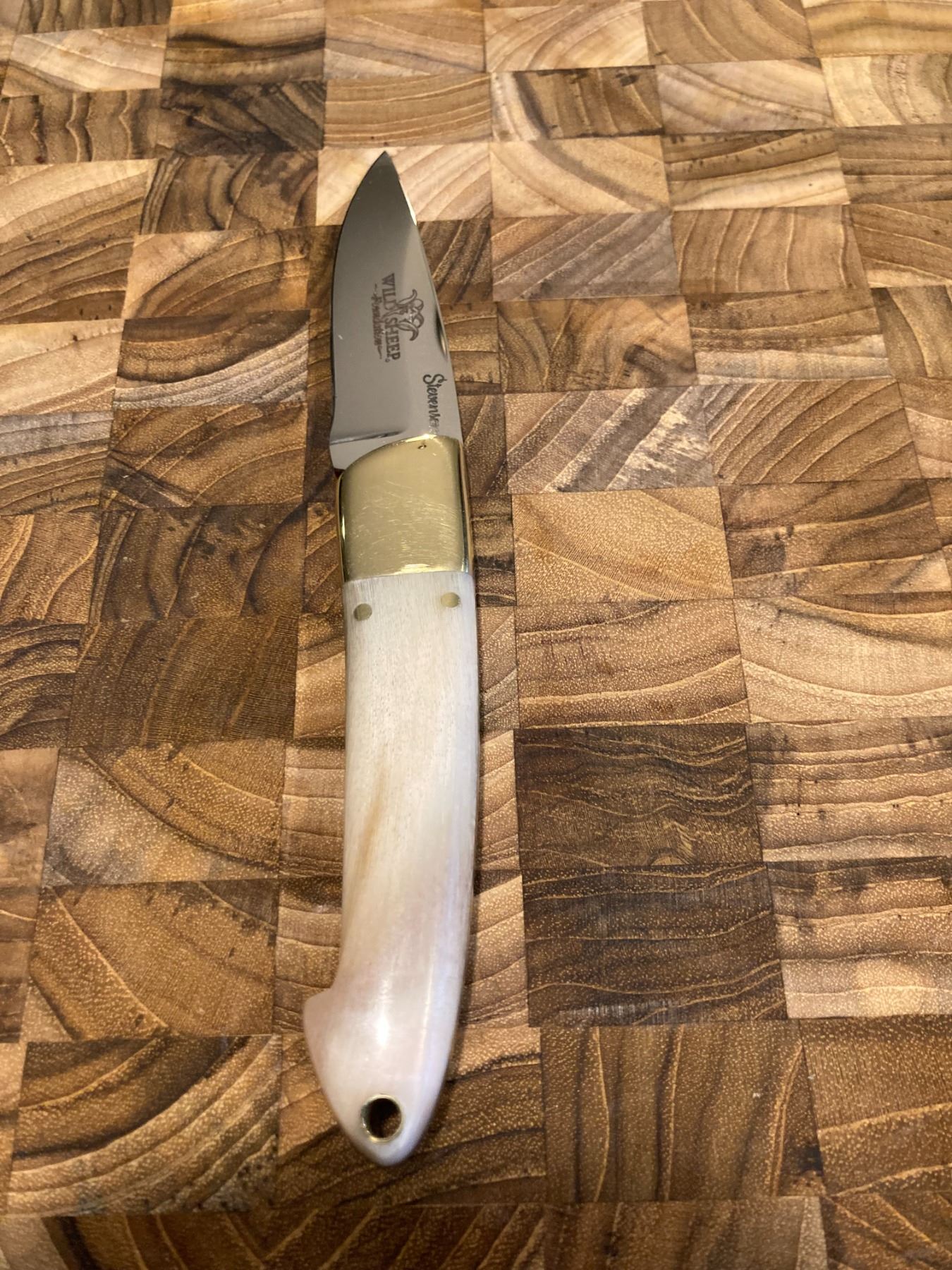 STEVENSON KNIVES CUSTOM RWL 34 BLADE WITH SHEEP HORN HANDLE
