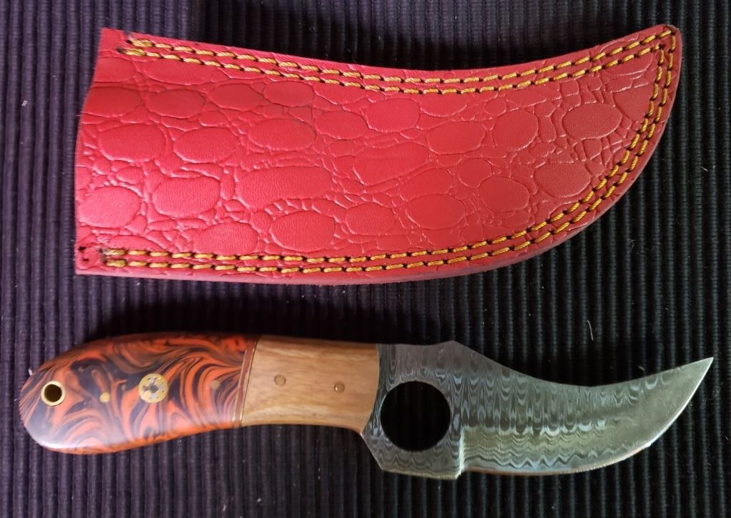 Lot 243 Hand Forged Damascus Steel Fixed Blade Knife