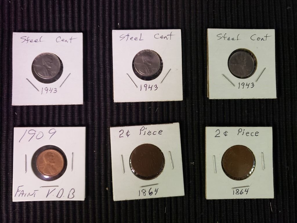 Lot 236 6 Random Coin - Steel Cents, 2 Cent Pieces, Lincoy
