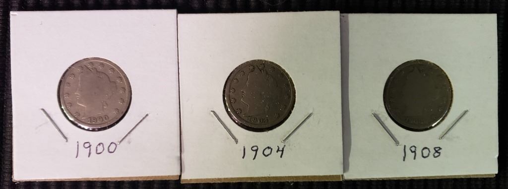 Lot 228 3 Liberty Head Nickels, Random Dates, At Least Good Condition