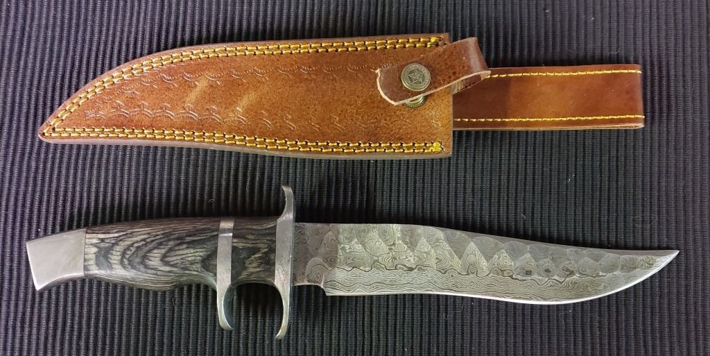 Lot 213 Hand Forged Damascus Steel Fixed Blade Knife