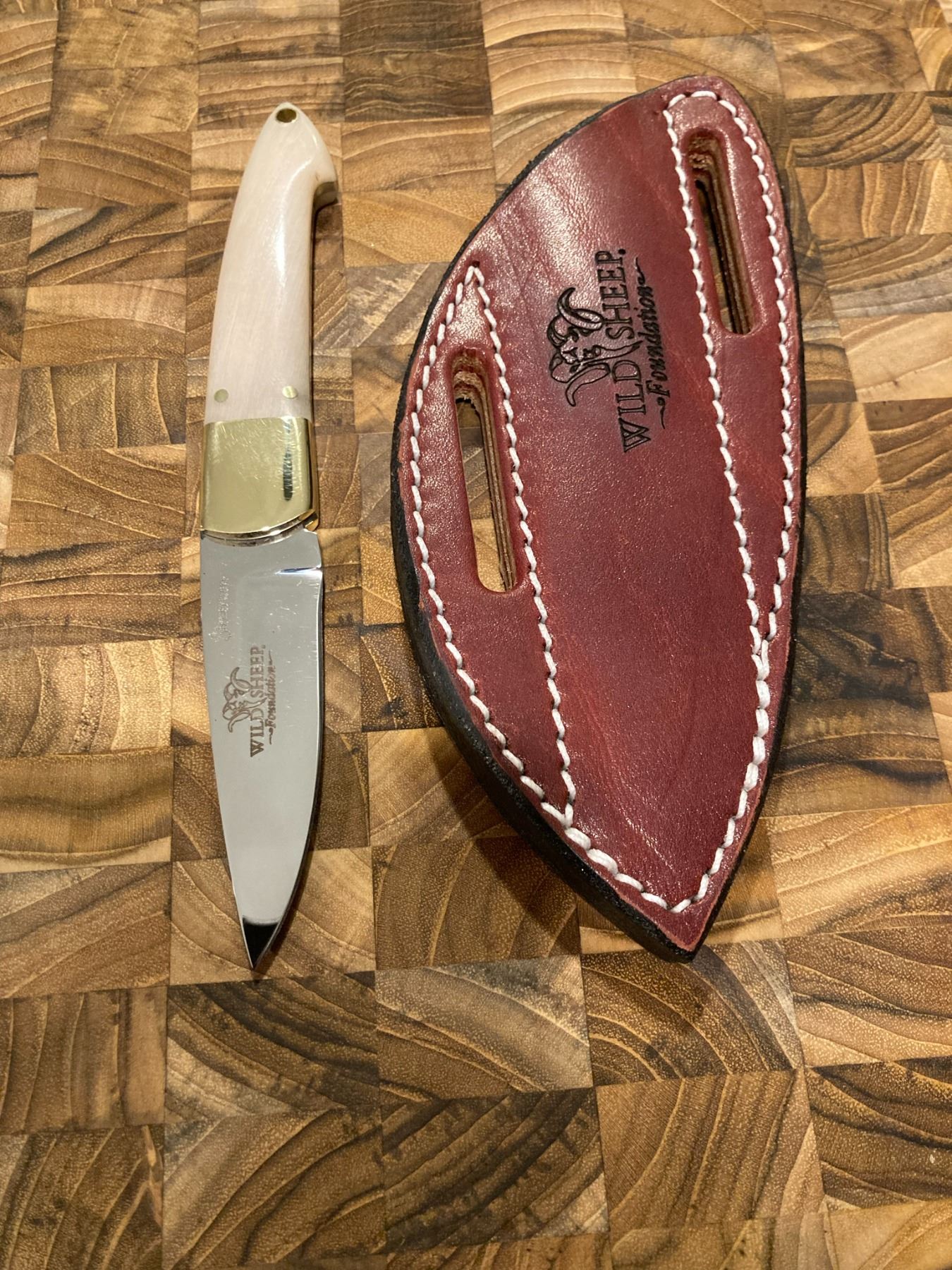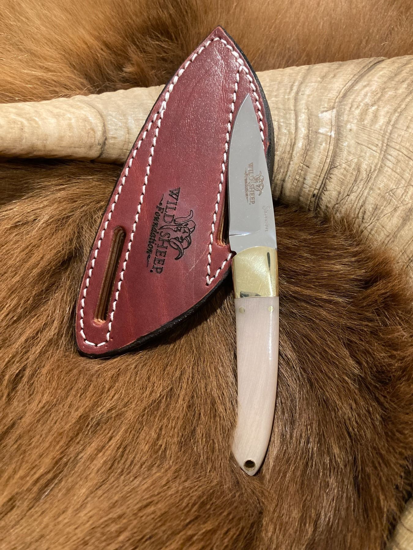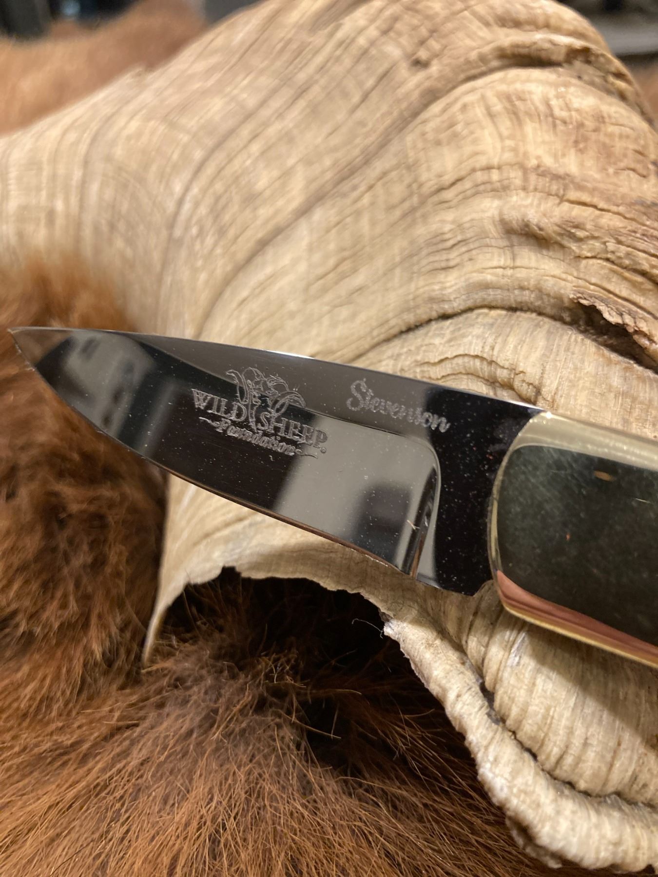 DONATION: This is a custom RWL 34 “Gentlemen’s’” blade carry knife with bolsters and sheep horn handle. Comes with a custom sheath with WSF logo and logo is also on the blade. Don Stevenson is donating this knife especially for the annual WSF Thinhorn Summit meeting. Don’s been building custom knives for nearly 25 years and donating to conservation programs for over 22 years. Don’t miss the opportunity to own a Don Stevenson knife!