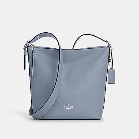 Coach Silver/Grey Mist Val Duffle features refined pebble leather, Inside zip, cell phone and multifunction pockets, Zip-top closure, fabric lining, Outside zip pocket, Adjustable strap with 21"" drop for shoulder or crossbody wear, 9" (L) x 11 1/4" (H) x 4 1/2" (W), Style No. C2818.