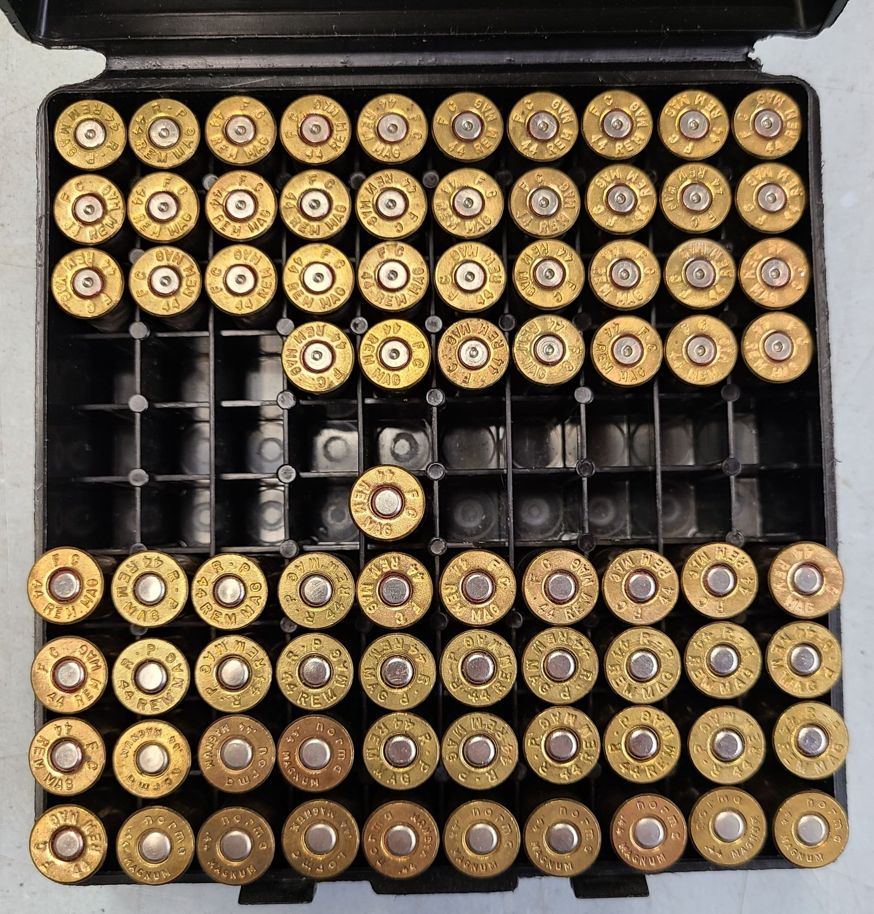44 Rem Mag 41 rds Jacketed Hollow Point + 37 Brass - Reloads in plastic Case