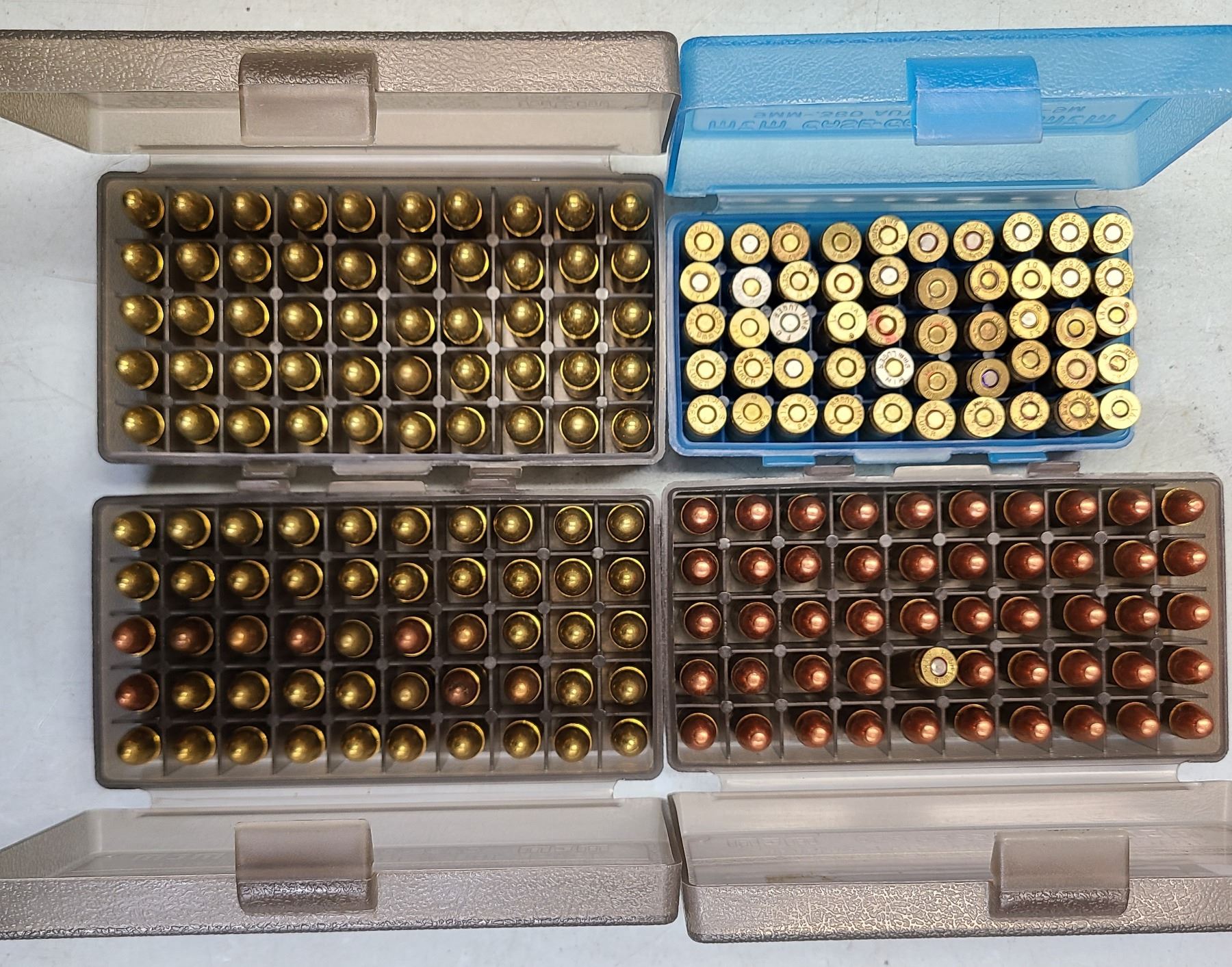 Reloads - 50 rds are Flat Nose lead and 150 rds are Jacketed Round nose as shown.