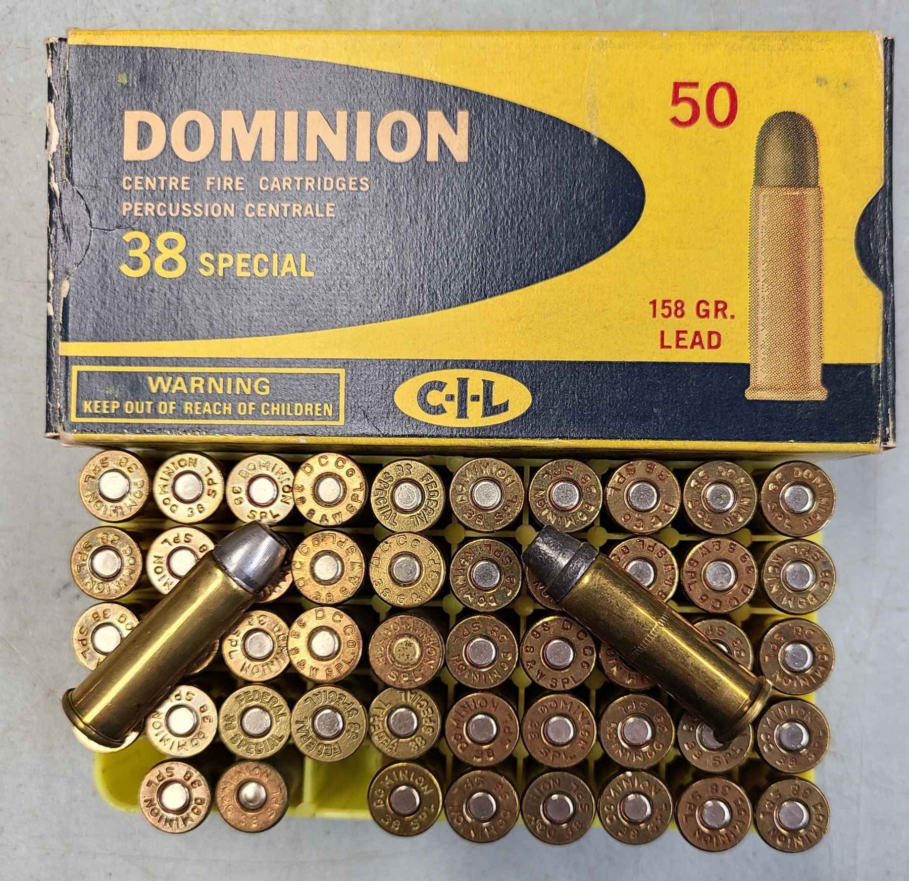Lot 25 Dominion 38 Special Collector Box with 50 rds Reload Flat Nose Lead Ammo
