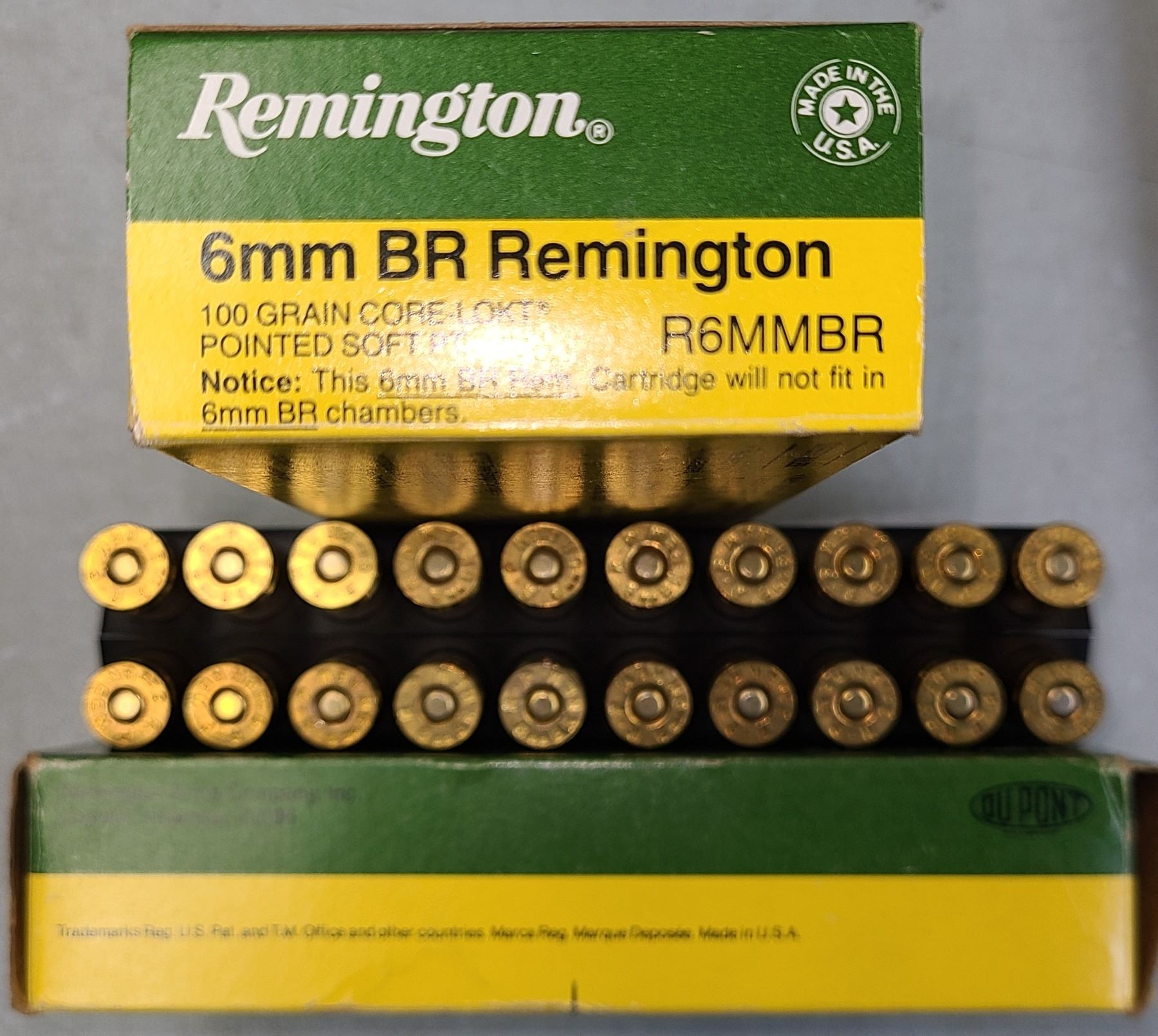 Lot 28 6 mm Remington BR 100gr Core-Lokt Soft Point - 40 rds Factory Ammo