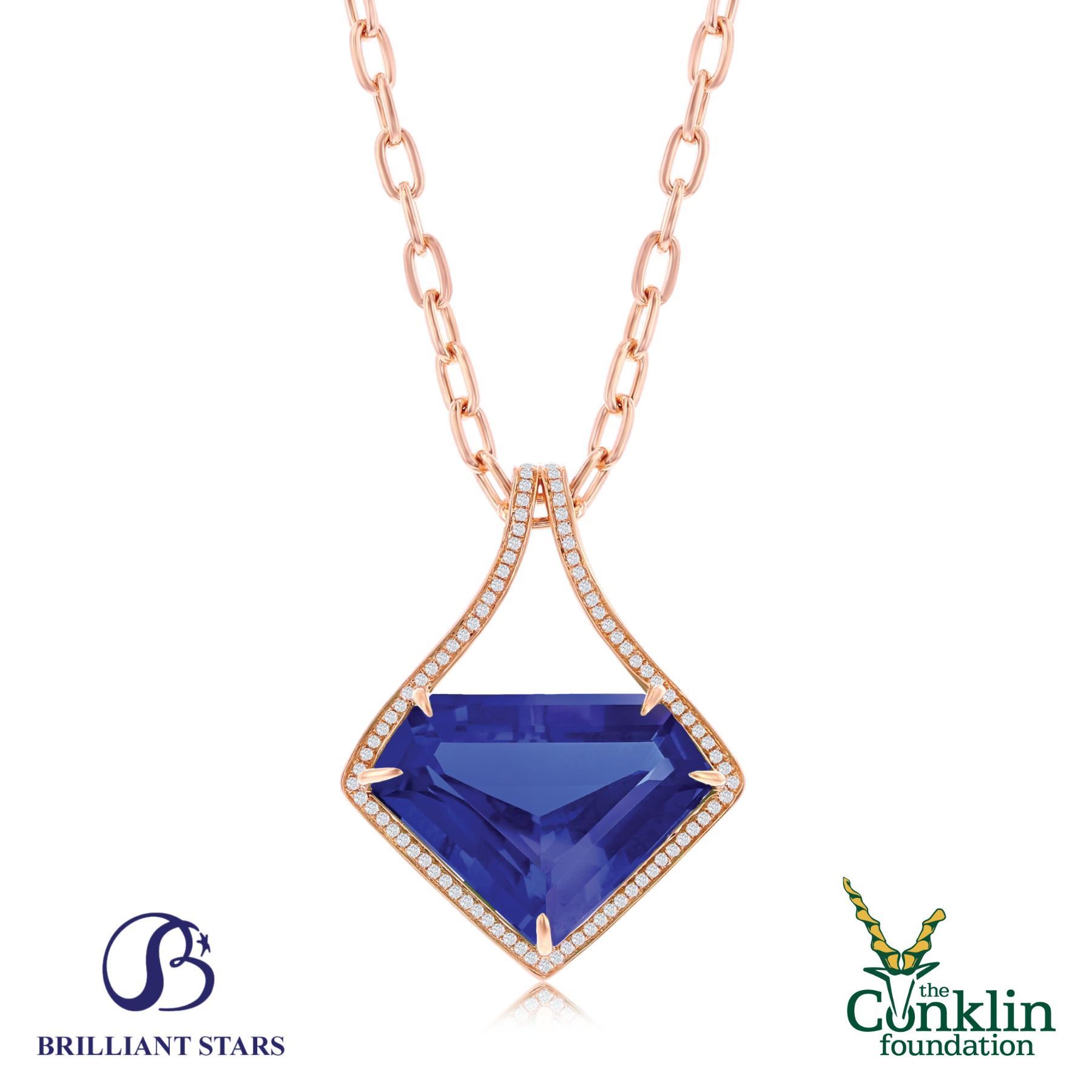DONATION: This is an exquisite 40CT triangle shaped tanzanite, set in an 18K rose gold and diamond handmade pendant. Tanzanite accompanied by GIA certificate and 3rd party appraisal. This beautiful piece speaks for itself.