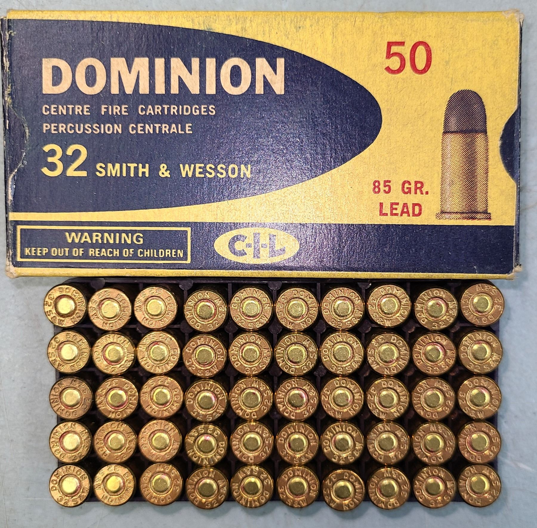 Lot 100 Collector Ammo Dominion 32 S&W Smith & Wesson 50 rds 85 gr Lead Factory
