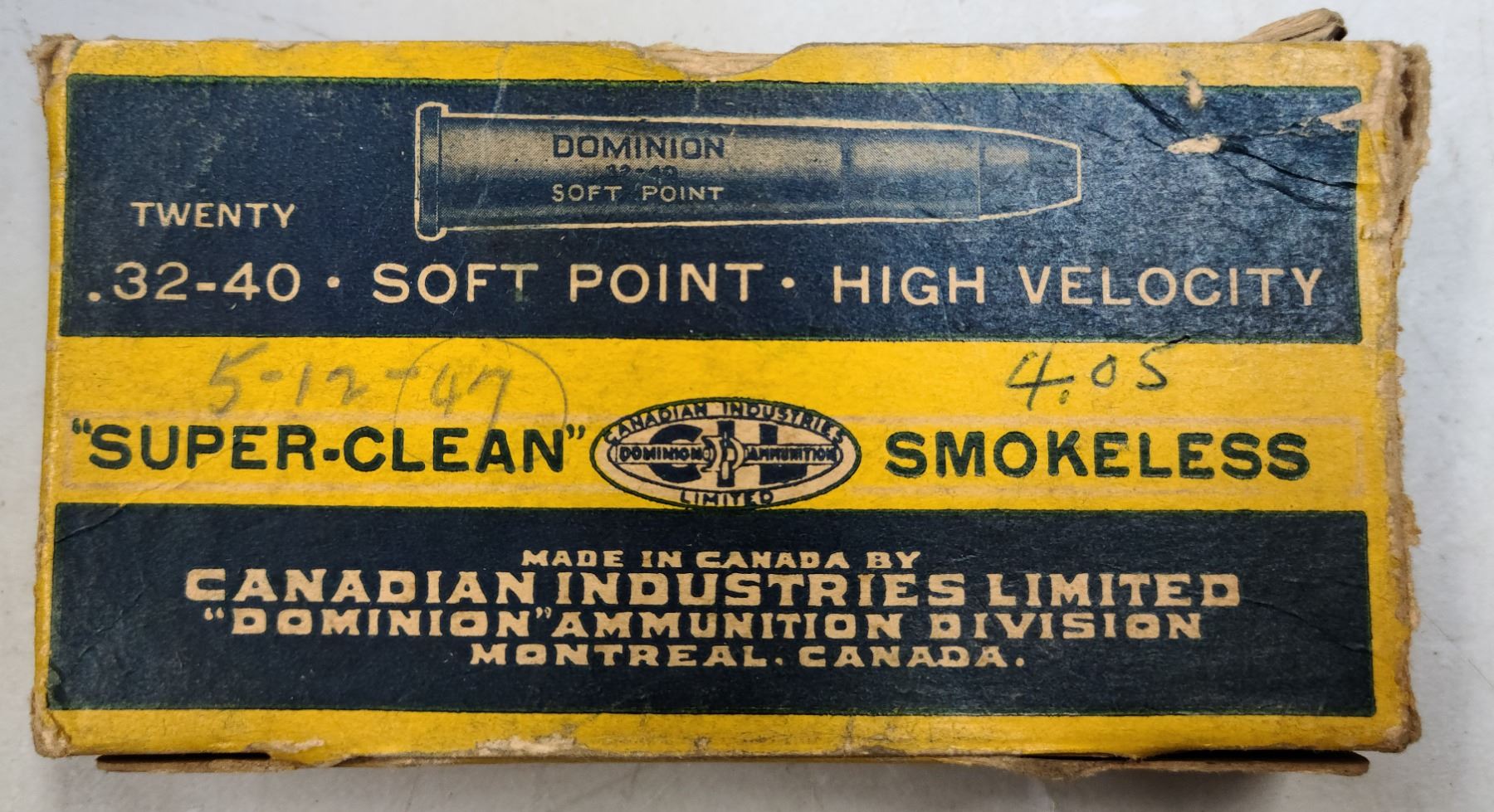 Lot 127 32-40 Win Dominion Collector Ammo - 11 rds & 2 Brass - Factory