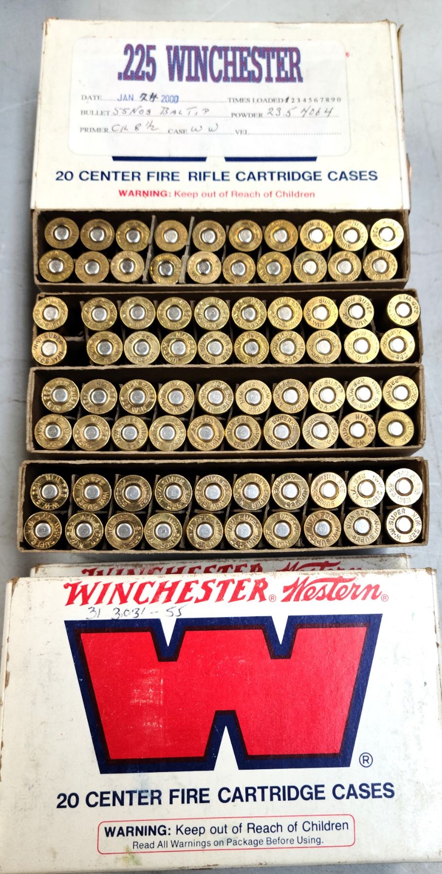 Lot 156 225 Winchester 55 gr Poly Tip - 80 rds - Reloads