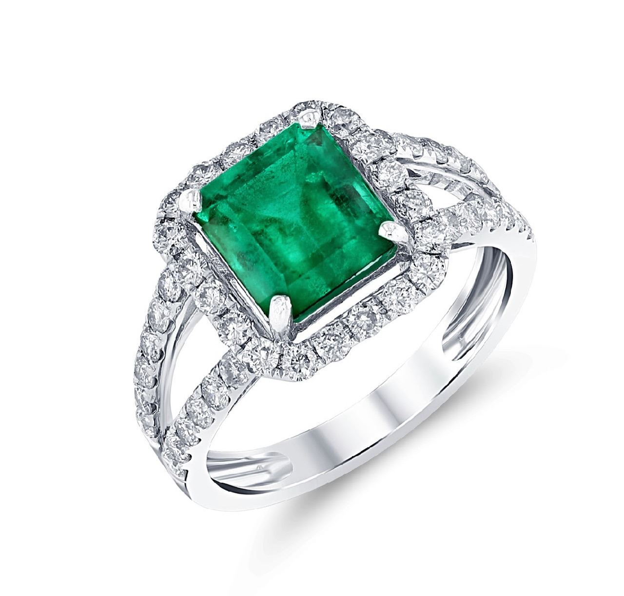BARANOF JEWELERS: One Carat Emerald and Diamond Ring Set In 14k