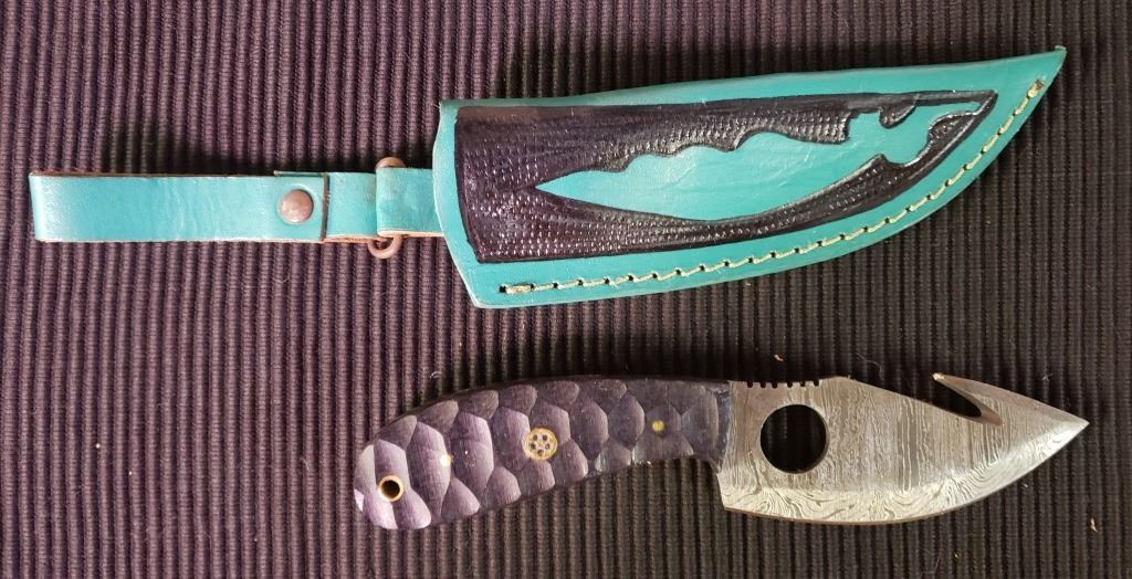 Lot 218 Hand Forged Damascus Steel Fixed Blade Knife