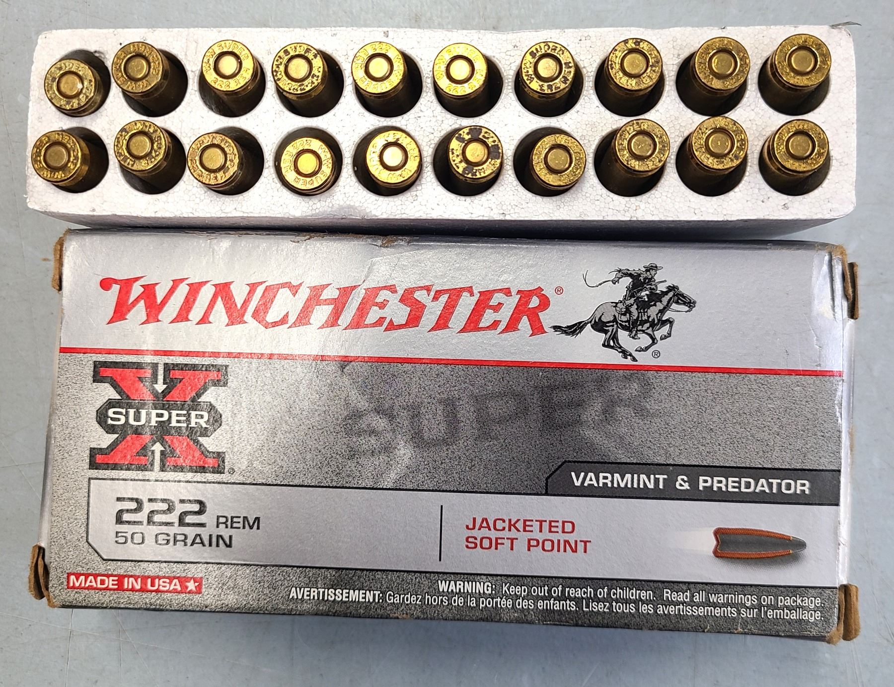 Lot 346 222 Rem Winchester Super X 50 gr Pointed Soft Point Ammo - 20 rds
