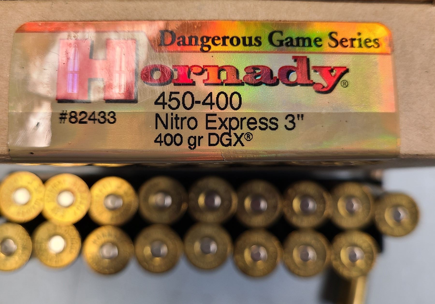 Lot 359 450-400 Nitro Express Hornady 400 gr DGX 3" Ammo - 20 rds