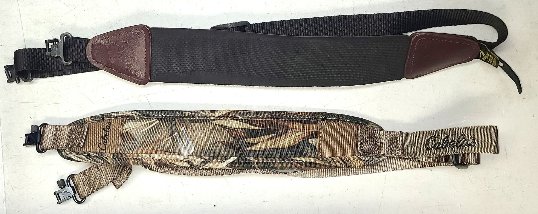 In great condition - Black Neoprene Sling and a Camo pattern Cabelas sling - both