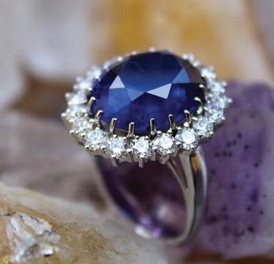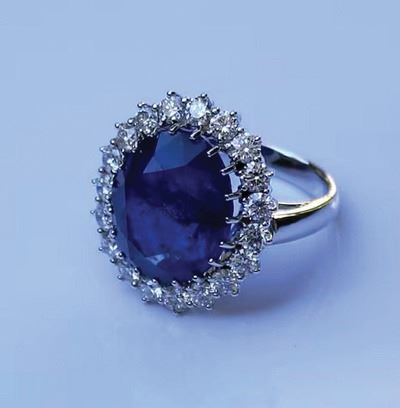 •This magnificent custom-made ring features a huge 6.0 carat blue sapphire