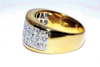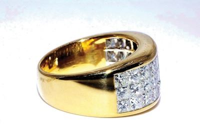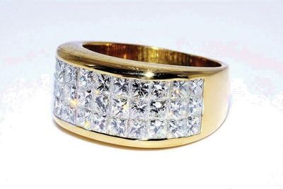 •The piece features a total of 36 princess cut diamonds, creating a solid surface