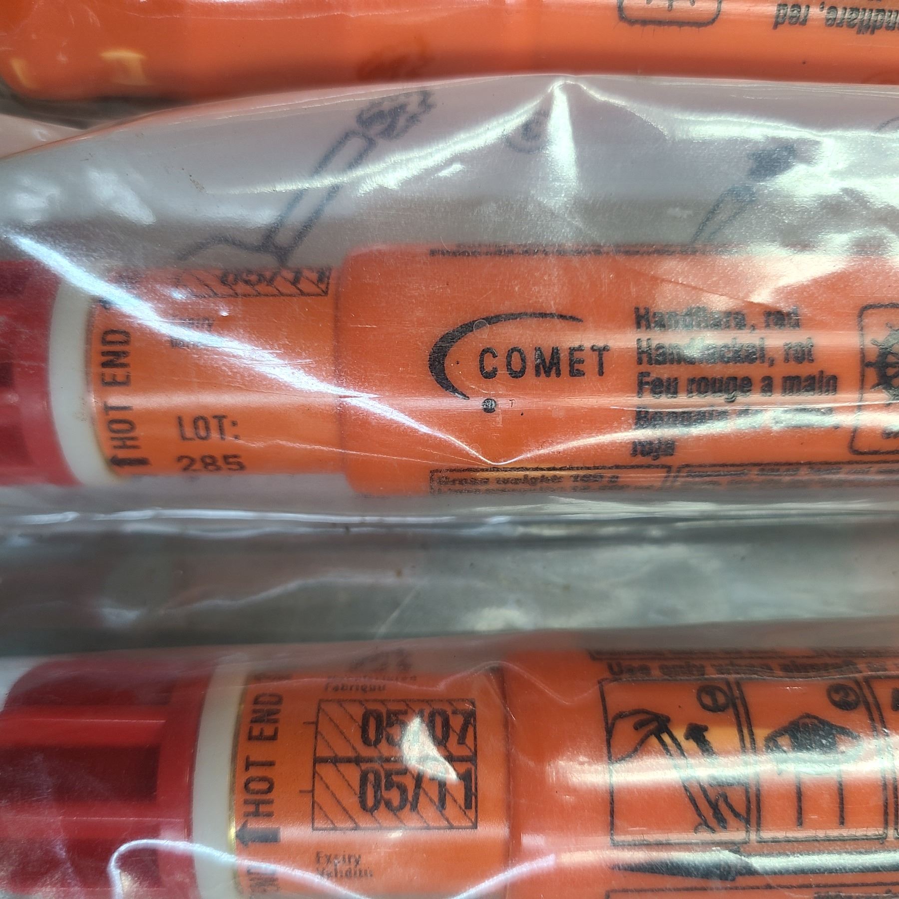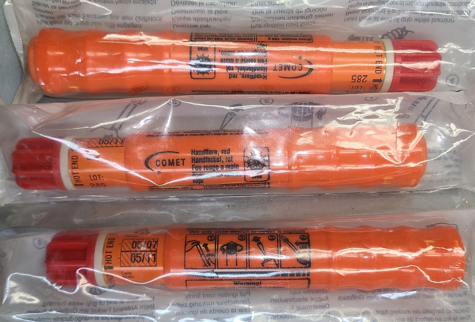 Comet Hand Held Emergency Red Signal Flares - 3 Pc Lot