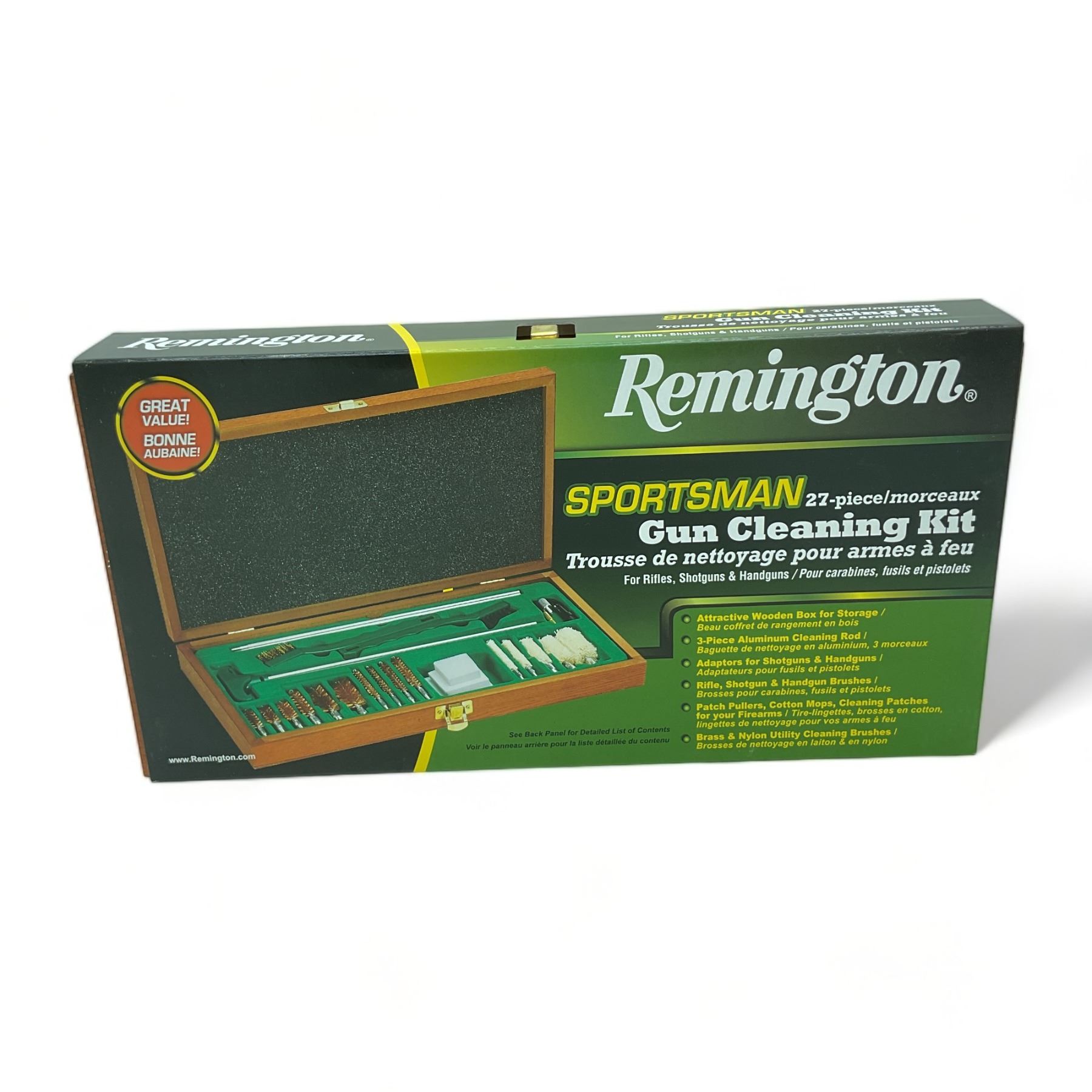 Remington Sportsman 27 Piece Universal Cleaning Kit in Wood Case, New