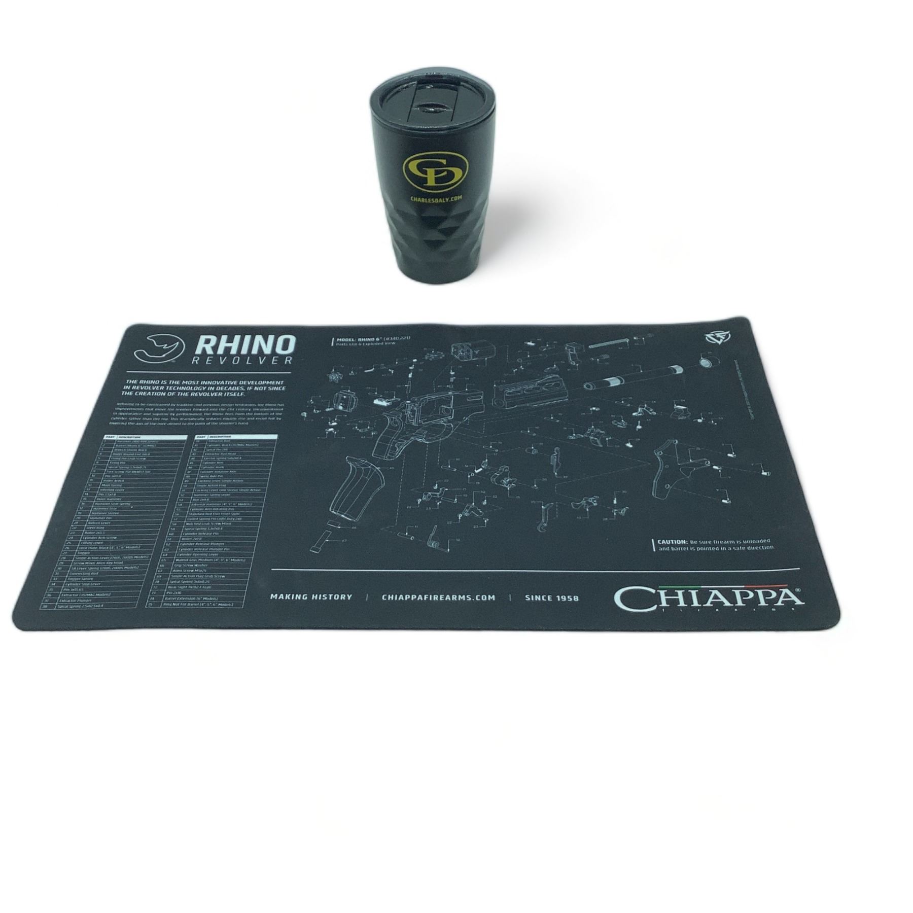 Chiappa Rhino Revolver Counter Mat 17" X 11" and Charles Daly Travel Cup, New