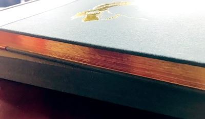 •Both the book and slipcase have a lovely gilt ibex head on the top cover of the book and face of