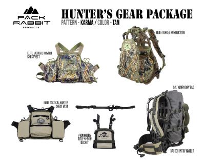 Pack Rabbit Products has generously donated a Hunter's Gear Package #1, featuring a range of essential items: the Elite Tactical Hunter's Chest Vest in Karma camouflage pattern, the Elite Turkey Hunter 3100 Pack also in Karma camouflage pattern, the Elite Tactical Hunter's Chest Vest in Tan, the Pronghorn Rifle-N-Bow Bucket in Tan, the 52L Yampa Dry Bag in Black Pearl, and the Backcountry Hauler Pack in Tan. This comprehensive collection allows you to pack your gear and transport your game with utmost comfort and efficiency, thanks to Pack Rabbit's innovative Exo-Frame technology. For more information, contact John Addleman at 241-774-4363 or by email jaddleman@pack-rabbit.com. Company's website: www.pack-rabbit.com.
